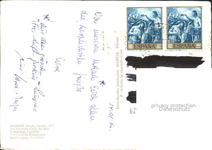 old postcard Malgrat de Mar Promenade Caudillo postalisch gelaufen Erhaltung siehe scans