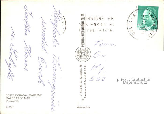 old postcard Malgrat de Mar Vista aerea postalisch gelaufen Erhaltung siehe scans [FriedD77]