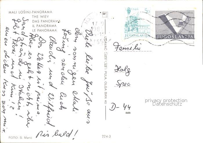 old postcard Mali Losinj Ortsansicht postalisch gelaufen Erhaltung siehe scans