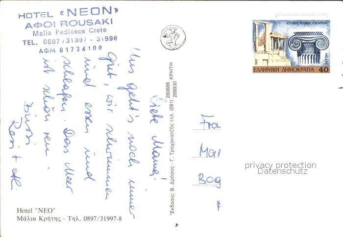 Malia Hotel Neon Bar postalisch nicht gelaufen Erhaltung siehe scans