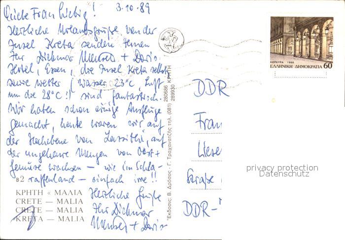 old postcard Malia Strand Muehle postalisch gelaufen Erhaltung siehe scans