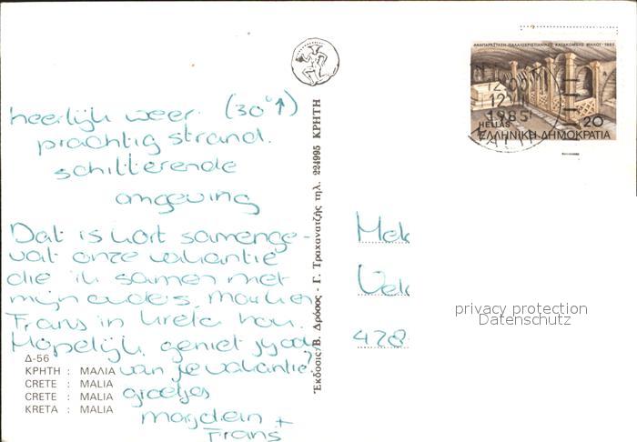 old postcard Malia postalisch gelaufen Erhaltung siehe scans