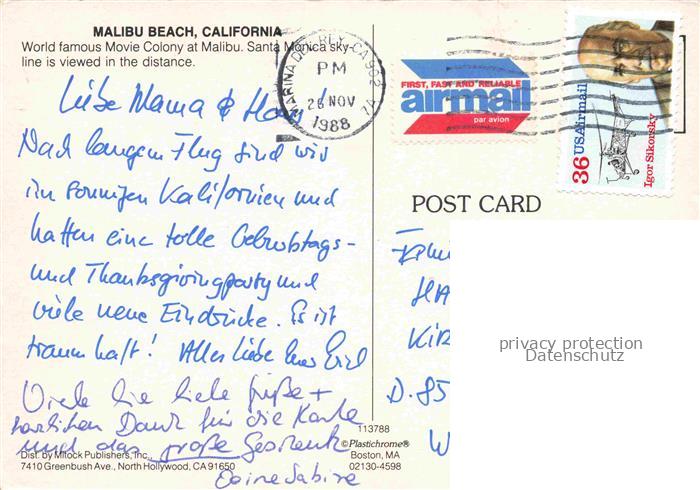 74095189 old postcard Malibu Beach Santa Monica California USA Colony at Malibu Fliegeraufnahme postalisch gelaufen Erhaltung siehe scans [WerneD78] KatCode: 14140050000000