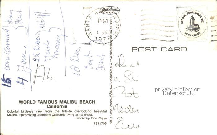 72229968 old postcard Malibu Beach postalisch gelaufen Erhaltung siehe scans KatCode: 14140050000000