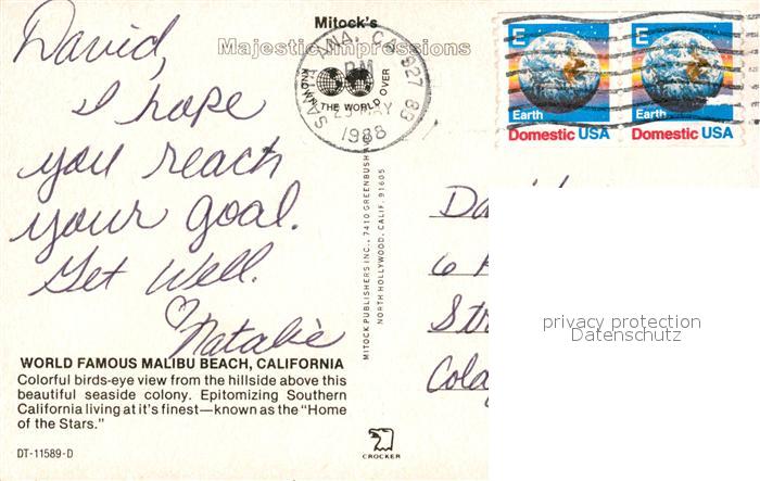 73080017 old postcard Malibu Birds eye view of the beach postalisch gelaufen Erhaltung siehe scans [FriedD77] KatCode: 14140050000000
