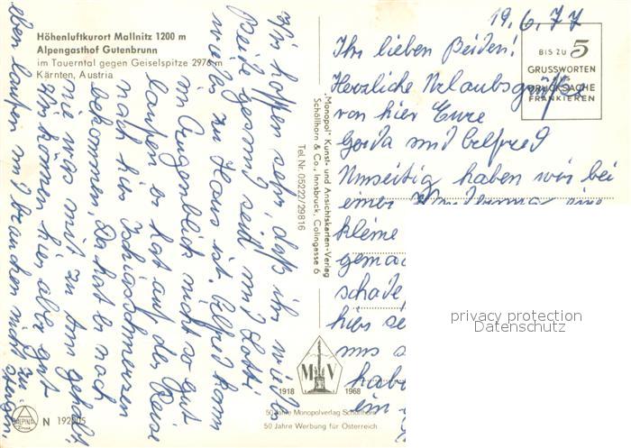 73631212 Mallnitz Kaernten Alpengasthof Gutenbrunn postalisch nicht gelaufen Erhaltung siehe scans [WerneD78] KatCode: 11390212020618