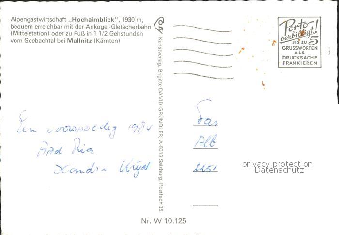 72287756 alte Postkarte Mallnitz Kaernten Alpengasthof Hochalmblick postalisch gelaufen Erhaltung siehe scans KatCode: 11390212020618