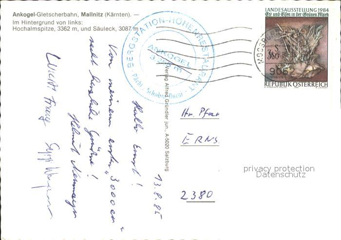 71899816 alte Postkarte Mallnitz Kaernten Ankogel Bergbahn Hochalmspitze Saeuleck Alpenpanorama postalisch gelaufen Erhaltung siehe scans KatCode: 11390212020618
