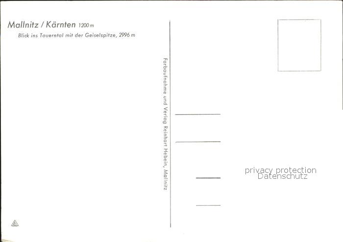 72447164 Mallnitz Kaernten Blick ins Tauerntal mit Geiselspitze postalisch nicht gelaufen Erhaltung siehe scans KatCode: 11390212020618
