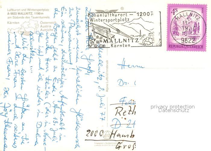 73049857 alte Postkarte Mallnitz Kaernten Fliegeraufnahme postalisch gelaufen Erhaltung siehe scans [KathaD81] KatCode: 11390212020618