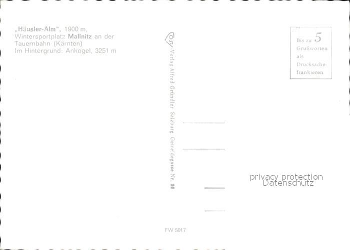 72439021 Mallnitz Kaernten Haeusler-Alm postalisch nicht gelaufen Erhaltung siehe scans KatCode: 11390212020618