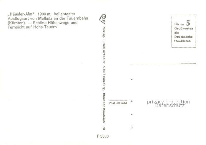 73340171 Mallnitz Kaernten Haeusler Alm mit Hohe Tauern postalisch nicht gelaufen Erhaltung siehe scans [LiesaD40] KatCode: 11390212020618