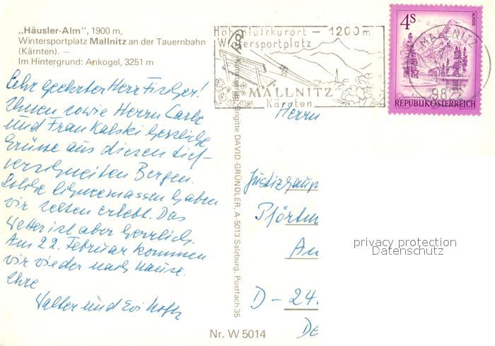 73267149 alte Postkarte Mallnitz Kaernten Haeusler Alm Winter postalisch gelaufen Erhaltung siehe scans [KathaD81] KatCode: 11390212020618