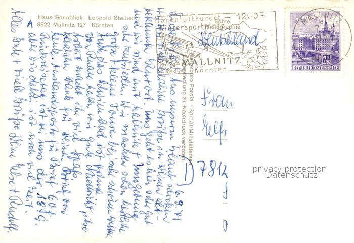 73293961 alte Postkarte Mallnitz Kaernten Haus Sonnblick postalisch gelaufen Erhaltung siehe scans [LiesaD40] KatCode: 11390212020618