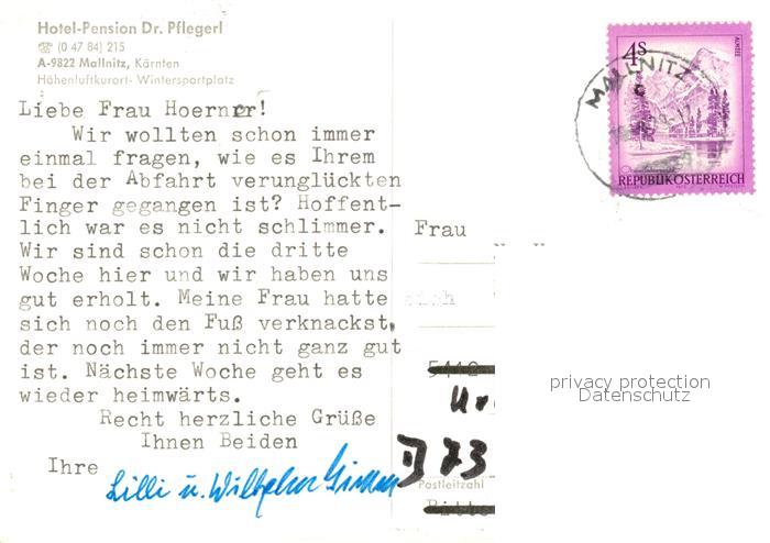 13235685 alte Postkarte Mallnitz Kaernten Hotel Pension Dr Pflegerl Alpen postalisch gelaufen Erhaltung siehe scans [FriedD77] KatCode: 11390212020618