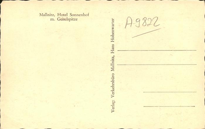 11296145 Mallnitz Kaernten Hotel Sonnenhof Geiselspitze KatCode 11390212020618