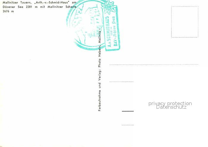 72819231 Mallnitz Kaernten Mallnitzer Tauern Arthur von Schmid Haus Doesener See Mallnitzer Scharte postalisch nicht gelaufen Erhaltung siehe scans [FriedD77] KatCode: 11390212020618