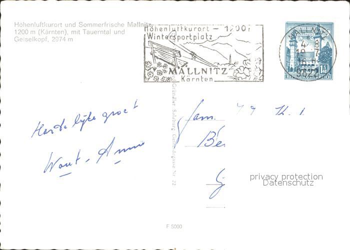 72093918 alte Postkarte Mallnitz Kaernten mit Tauerntal und Geiselkopf postalisch gelaufen Erhaltung siehe scans KatCode: 11390212020618