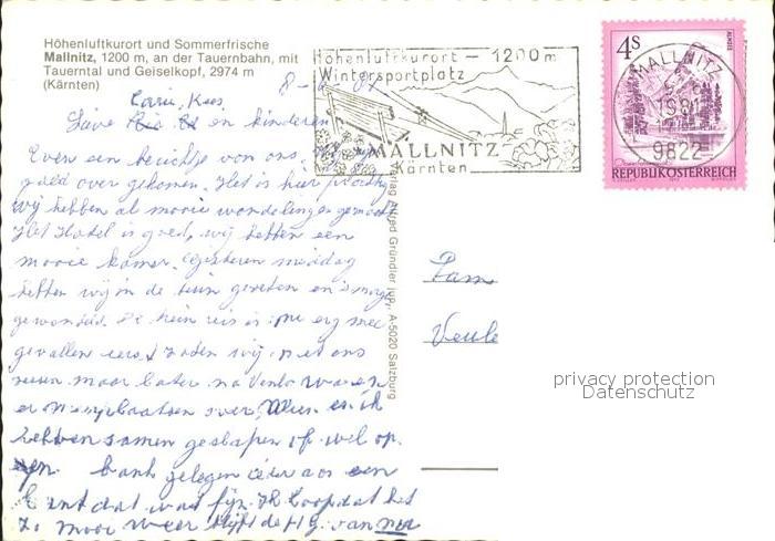 72315168 alte Postkarte Mallnitz Kaernten mit Tauerntal und Geiselkopf postalisch gelaufen Erhaltung siehe scans KatCode: 11390212020618