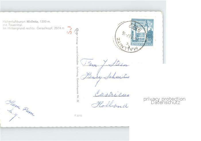 72006252 alte Postkarte Mallnitz Kaernten Panorama Tauerntal Geiselkopf postalisch gelaufen Erhaltung siehe scans KatCode: 11390212020618
