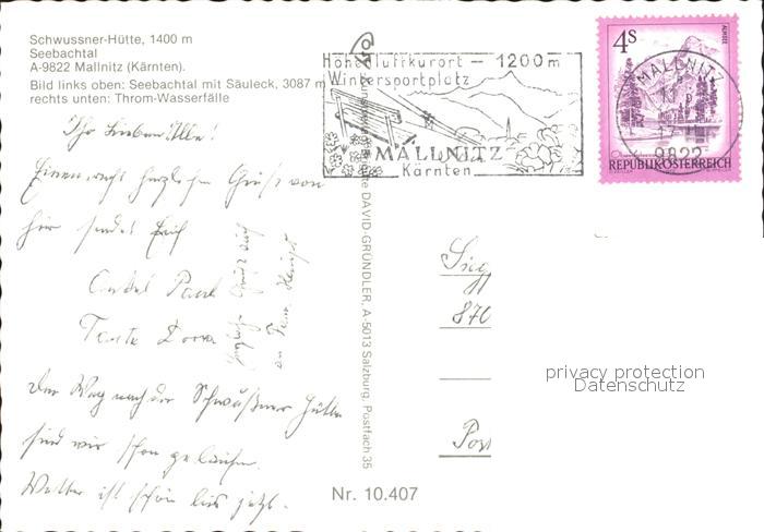 72022936 alte Postkarte Mallnitz Kaernten Schwussner Huette postalisch gelaufen Erhaltung siehe scans KatCode: 11390212020618
