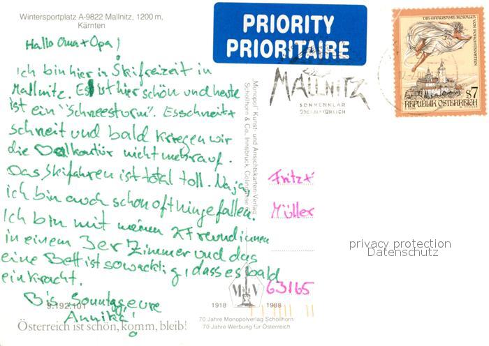 73244215 alte Postkarte Mallnitz Kaernten Skigebiet Pferdeschlitten Wild postalisch gelaufen Erhaltung siehe scans [LiesaD40] KatCode: 11390212020618
