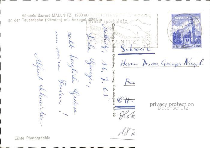 42588146 alte Postkarte Mallnitz Kaernten Tauernbahn Ankogel postalisch gelaufen Erhaltung siehe scans [KathaD79] KatCode: 11390212020618