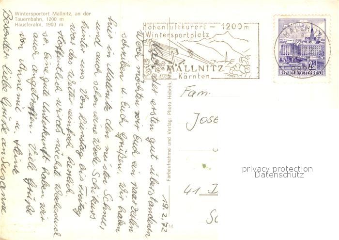 73530529 alte Postkarte Mallnitz Kaernten Tauernbahn Haeusleralm postalisch gelaufen Erhaltung siehe scans [WerneD78] KatCode: 11390212020618