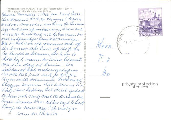72603712 alte Postkarte Mallnitz Kaernten Winterpanorama Wintersportplatz an der Tauernbahn mit Geiselspitze postalisch gelaufen Erhaltung siehe scans [FriedD77] KatCode: 11390212020618