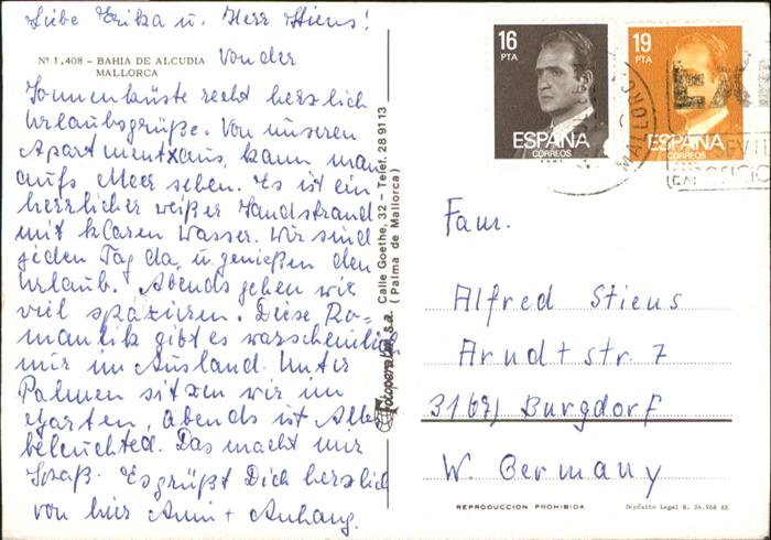 old postcard Mallorca Bahia de Alcuida postalisch gelaufen