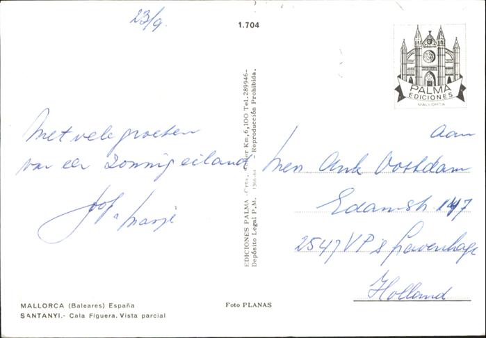 old postcard Mallorca Cala Figuera postalisch gelaufen