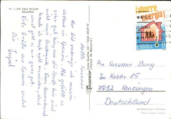 old postcard Mallorca Cala Millor postalisch gelaufen