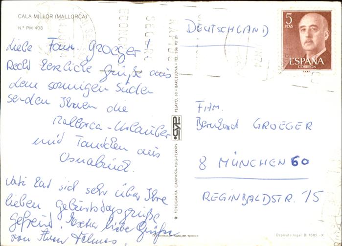 old postcard Mallorca Cala Millor postalisch gelaufen