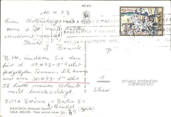 old postcard Mallorca Cala Millor Fliegeraufnahme postalisch gelaufen Erhaltung siehe scans