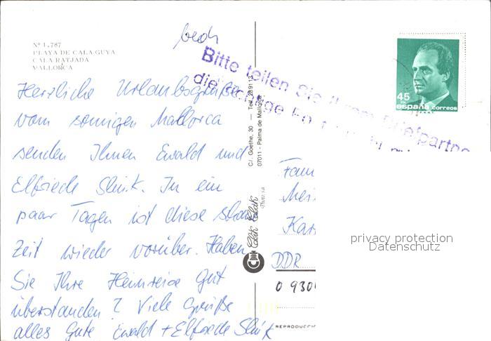 old postcard Mallorca Cala Ratjada Playa de Cala Guya postalisch gelaufen Erhaltung siehe scans