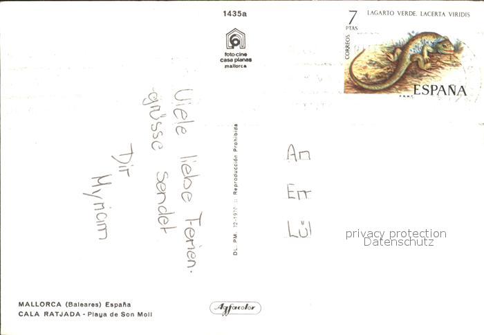 old postcard Mallorca Cala Ratjada Playa de Son Moll postalisch gelaufen Erhaltung siehe scans