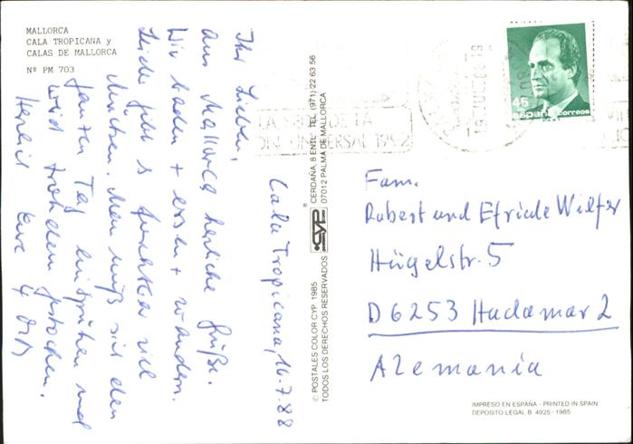 old postcard Mallorca Cala Tropicana Calas de Mallorca postalisch gelaufen
