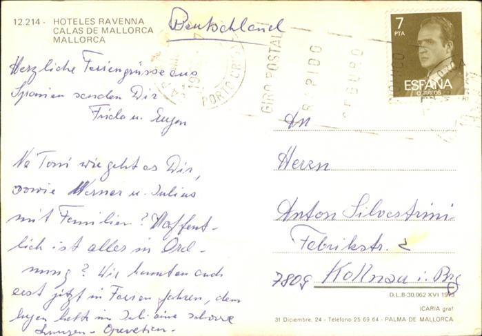 old postcard Mallorca Calas de Mallorca postalisch gelaufen
