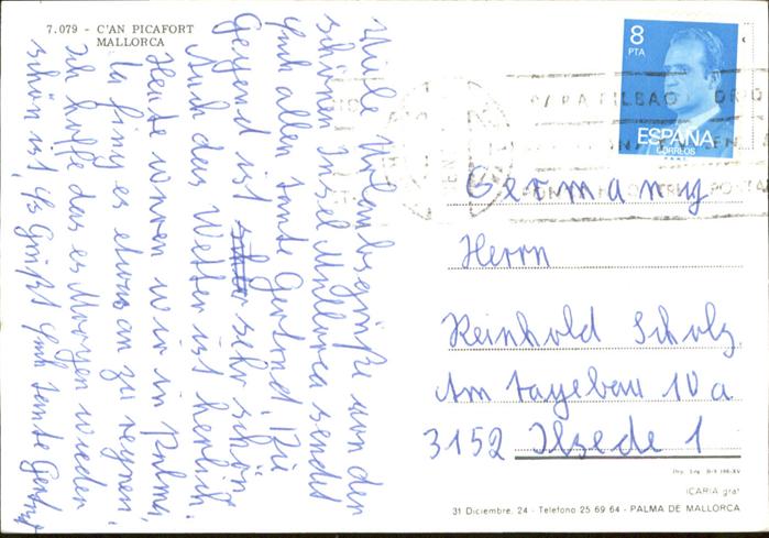 old postcard Mallorca Ca`N Picafort postalisch gelaufen