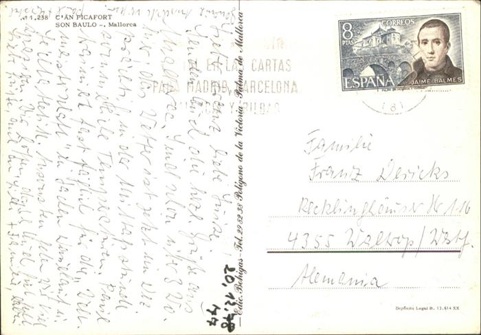 old postcard Mallorca C`An Picafort Son Baulo postalisch gelaufen