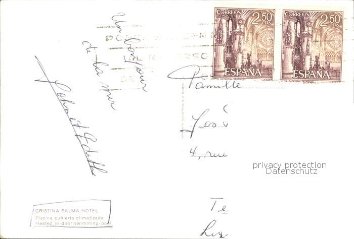 old postcard Mallorca Christina Palma Hotel postalisch gelaufen Erhaltung siehe scans