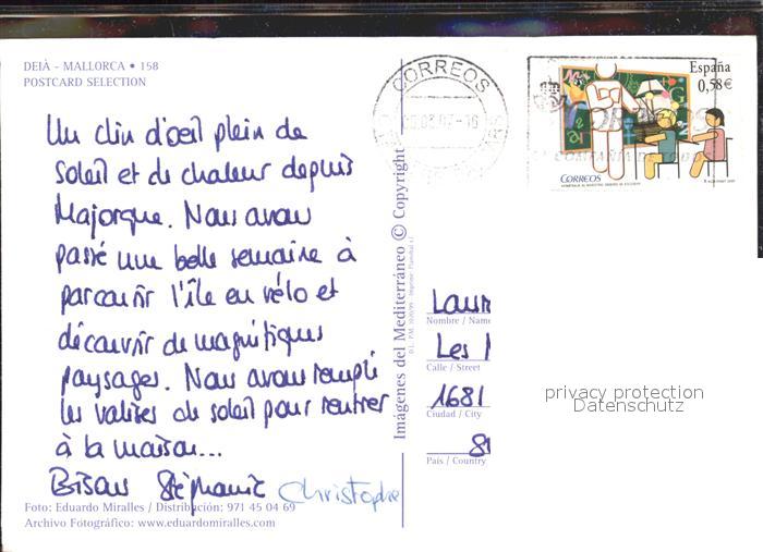 old postcard Mallorca Deia Ortsansicht postalisch gelaufen Erhaltung siehe scans