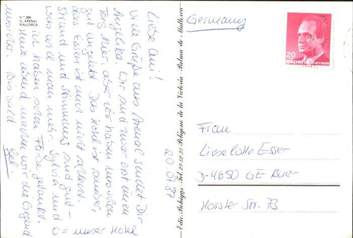 old postcard Mallorca El Arenal postalisch gelaufen