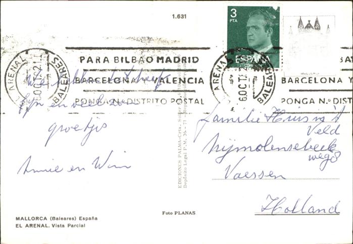 old postcard Mallorca El Arenal postalisch gelaufen