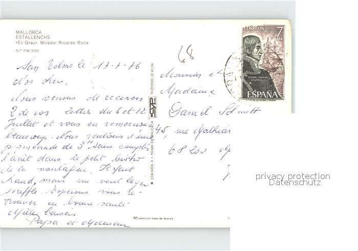 old postcard Mallorca Estallenchs Fliegeraufnahme postalisch gelaufen Erhaltung siehe scans