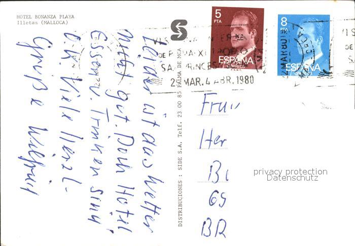 old postcard Mallorca Fliegeraufnahme Hotel Bonanza Playa Illetas postalisch gelaufen Erhaltung siehe scans
