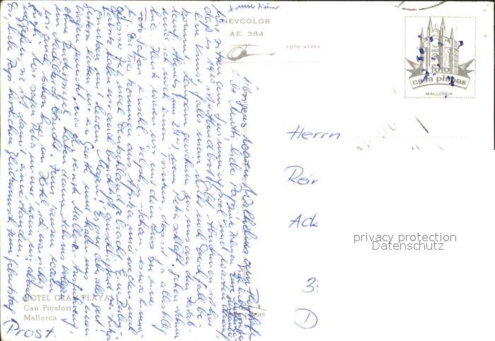 old postcard Mallorca Fliegeraufnahme Hotel Grand Playa postalisch gelaufen Erhaltung siehe scans