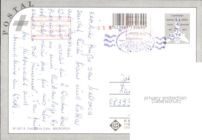 old postcard Mallorca Font de Sa Cala Vista aerea postalisch gelaufen Erhaltung siehe scans