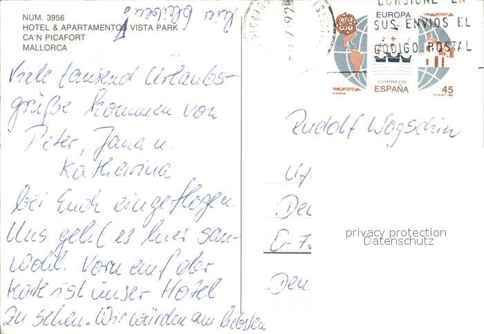 old postcard Mallorca Hotel Apartementso Vista Park Swimmingpools postalisch gelaufen Erhaltung siehe scans