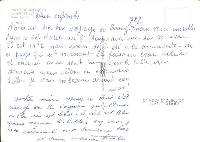Mallorca Hotel Apolo postalisch nicht gelaufen Erhaltung siehe scans